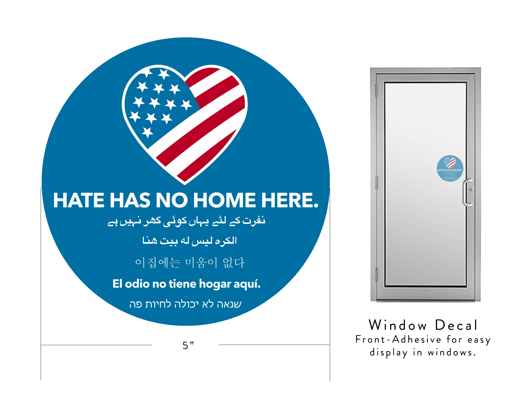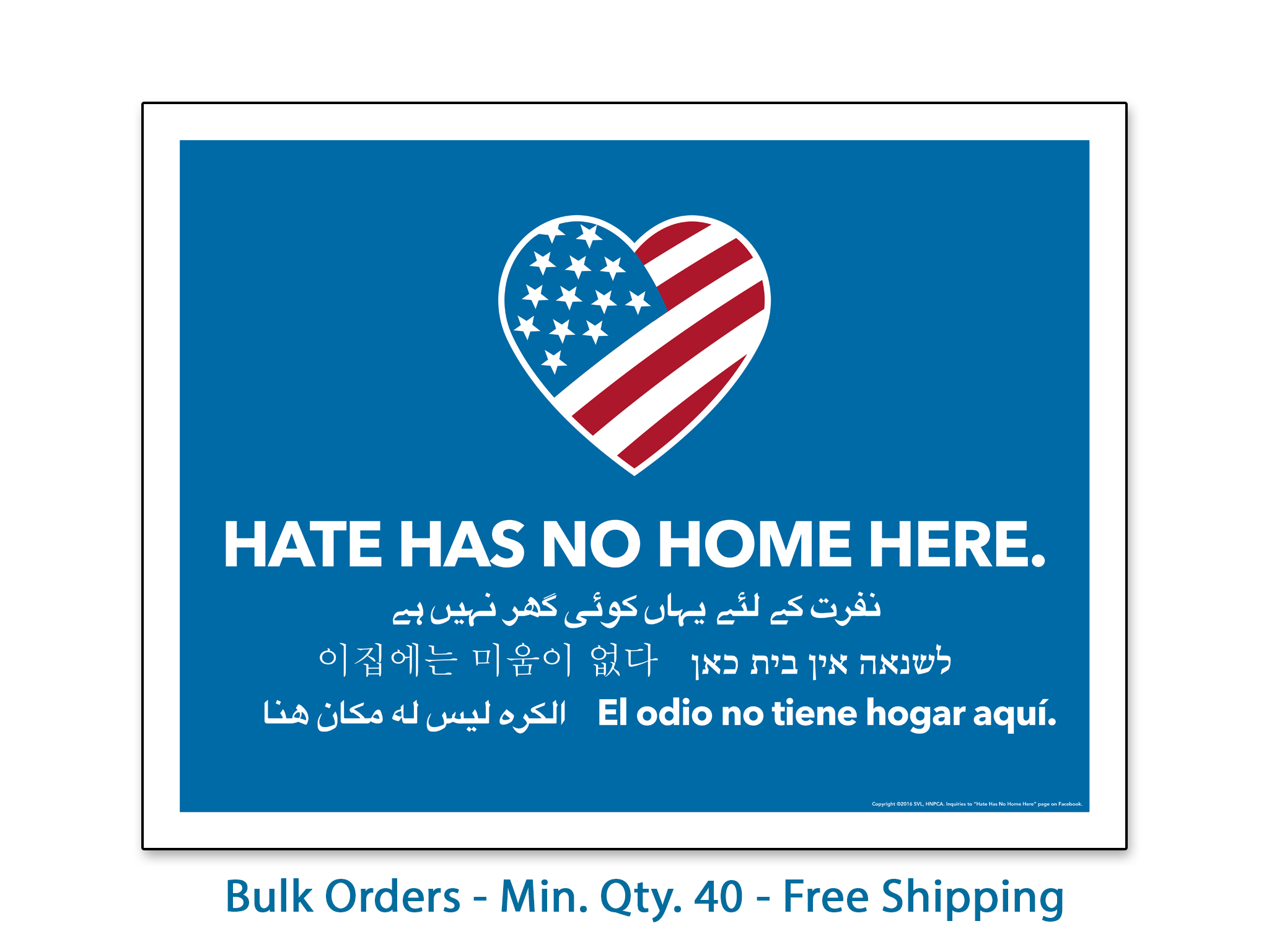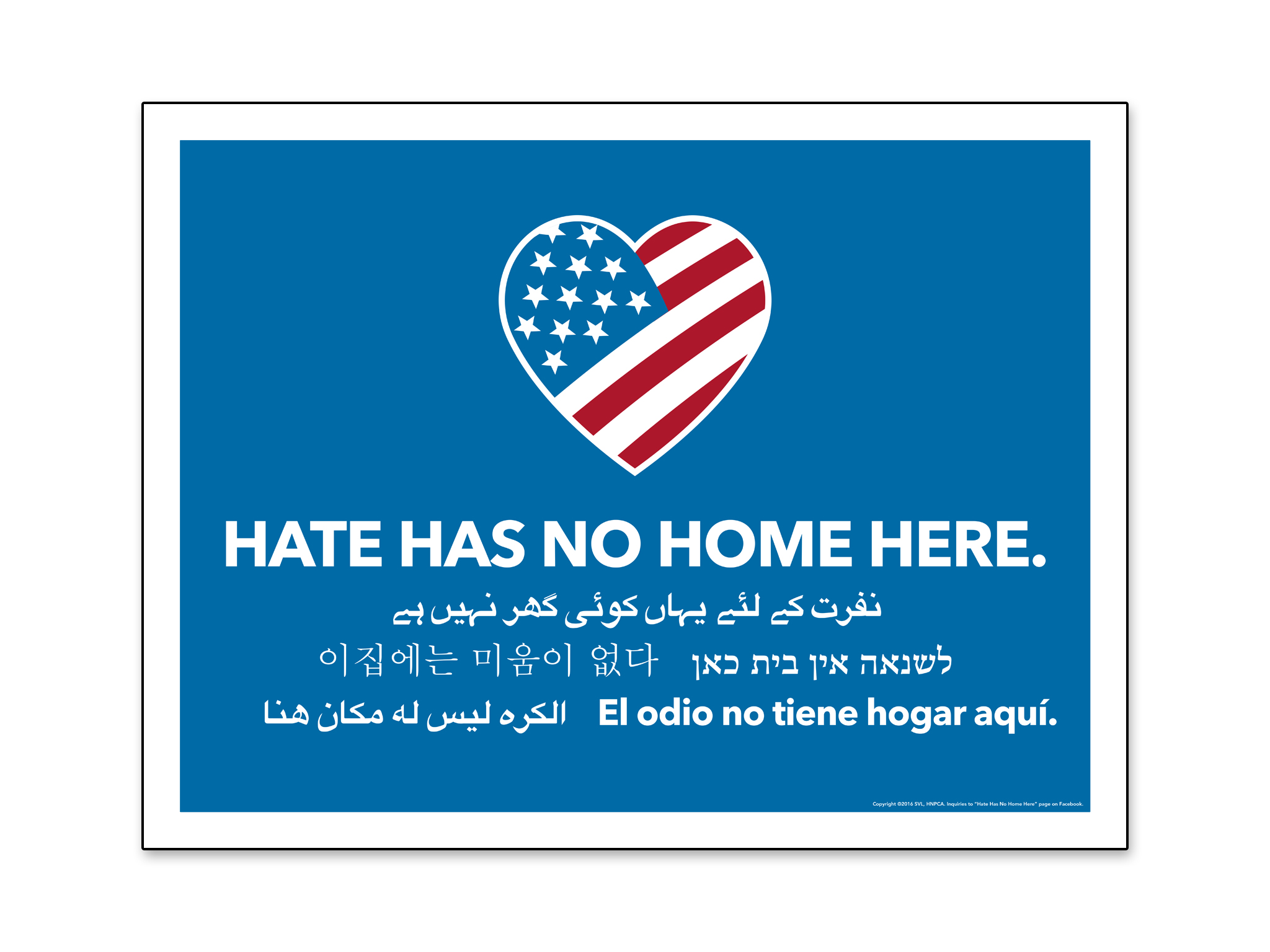 The Hate Has No Home Here movement is built around a simple idea: it’s easy to hate people we don’t know. Posters and yard signs are just the beginning. What starts as powerful, positive messaging continues in relationship-building, dialogue, and communal action. When neighbors of different races, religions, and nationalities move past indifference to investment in one another, we knock out the underpinnings of racism and intolerance, and make possible a better future for our communities.