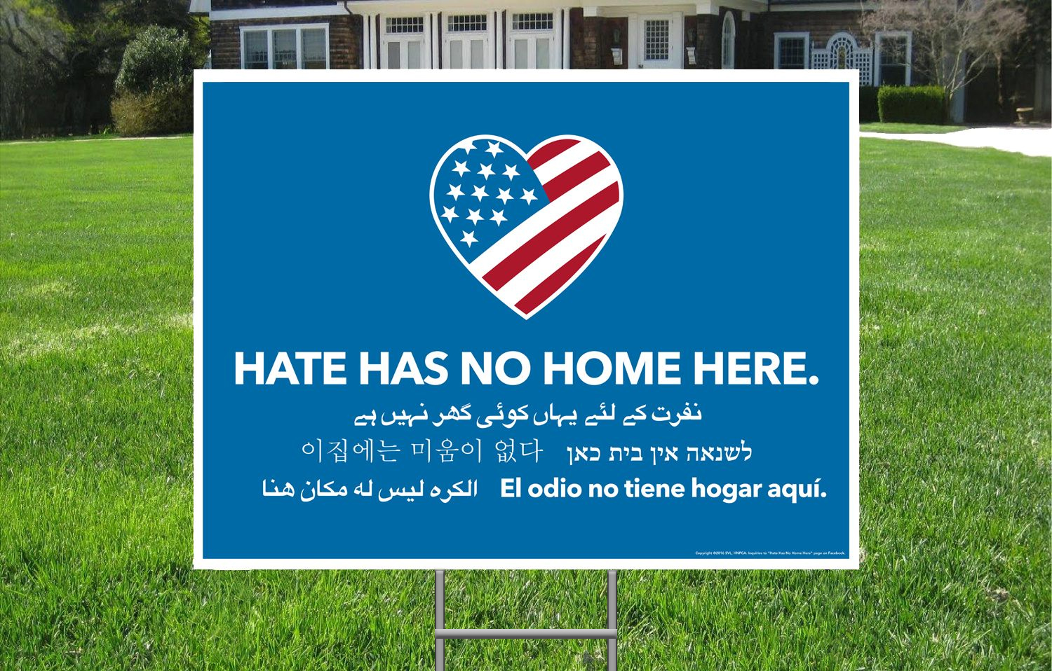 The Hate Has No Home Here project seeks to declare neighborhood residences, businesses, and places of community free from hate speech and behavior, providing safe places for conversation, work, learning, and living.